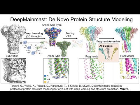 G. Terashi, X. Wang, D. Prasad, T. Nakamura, and D. Kihara. 2024. DeepMainmast: integrated protocol of protein structure modeling for cryo-EM with deep learning and structure prediction. Nature Methods. 21, 122-131.